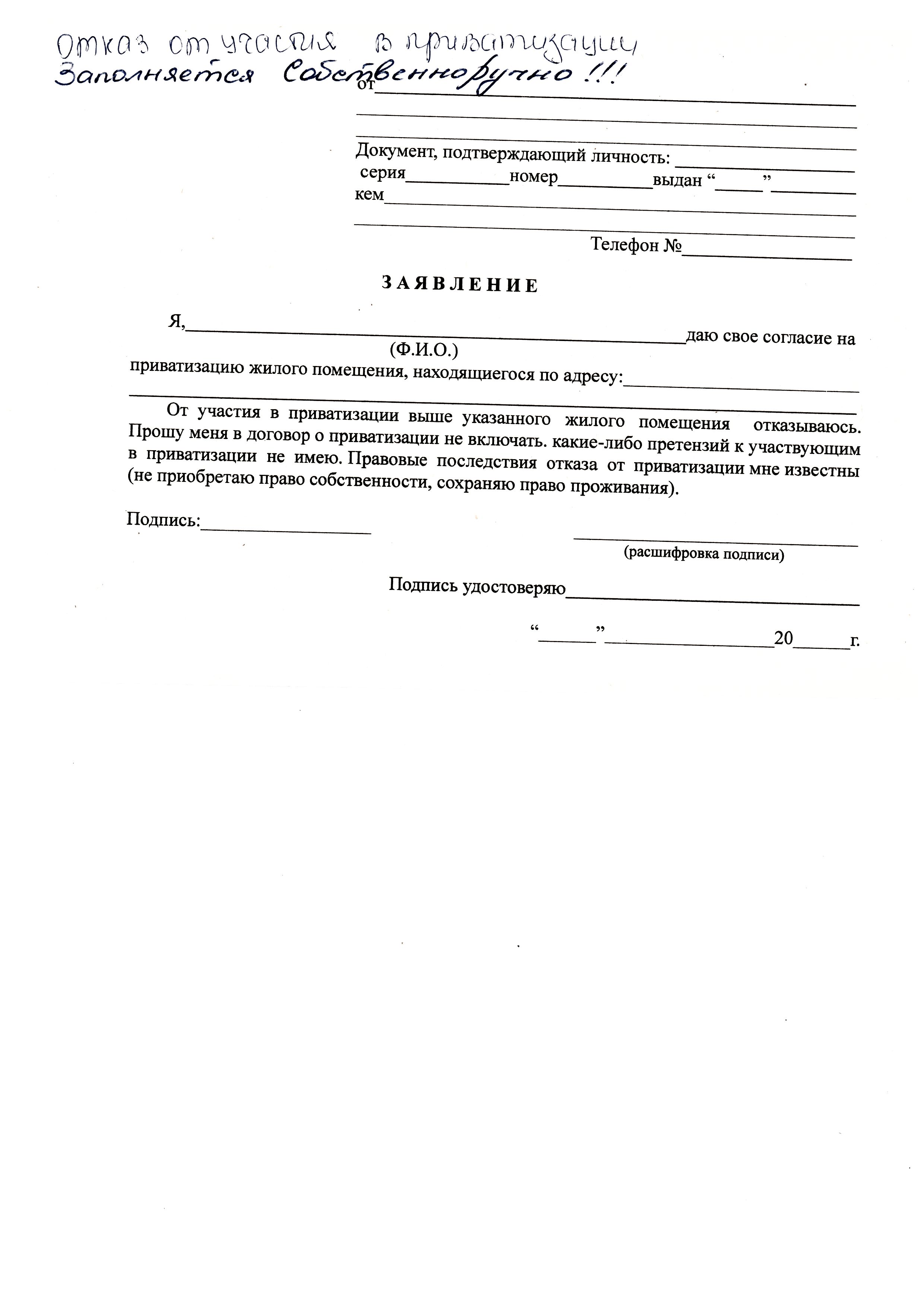 Образец заявления ОТКАЗ Скачать
